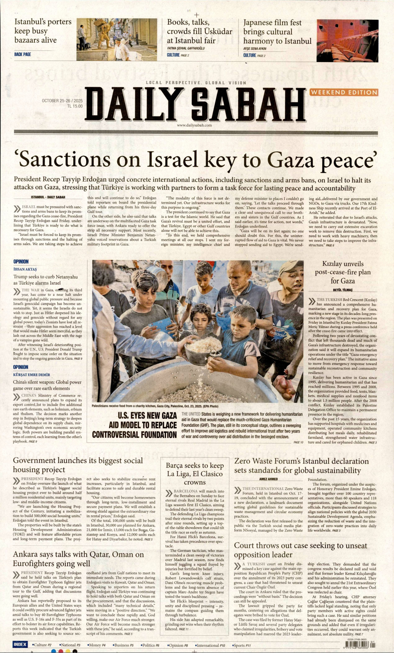 DAİLY SABAH Gazetesi 25 Ekim 2025, Cumartesi Günü Manşeti